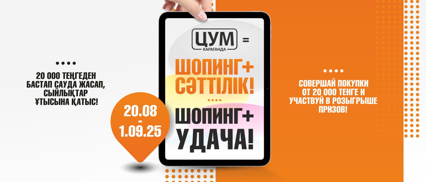 · Совершить покупку в ТЦ «ЦУМ» на сумму от 20 000 тенге;