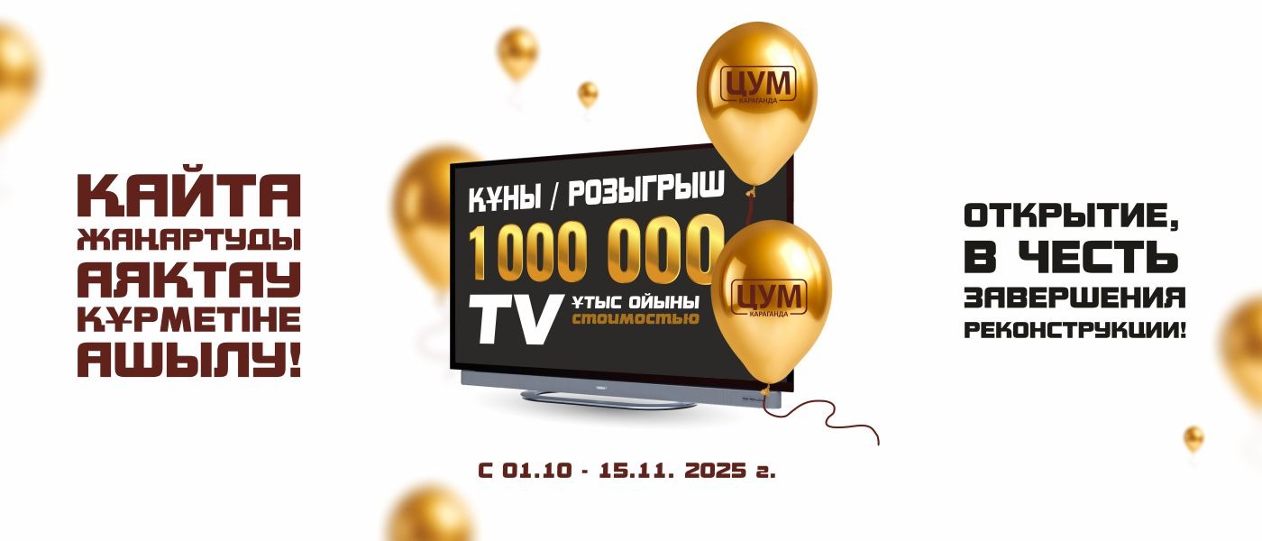 1. 15 қараша күні сағат 16:00-де ЦУМ сауда орталығының 3-қабатында өтетін сыйлықтар ұтысына қатысыңыз.